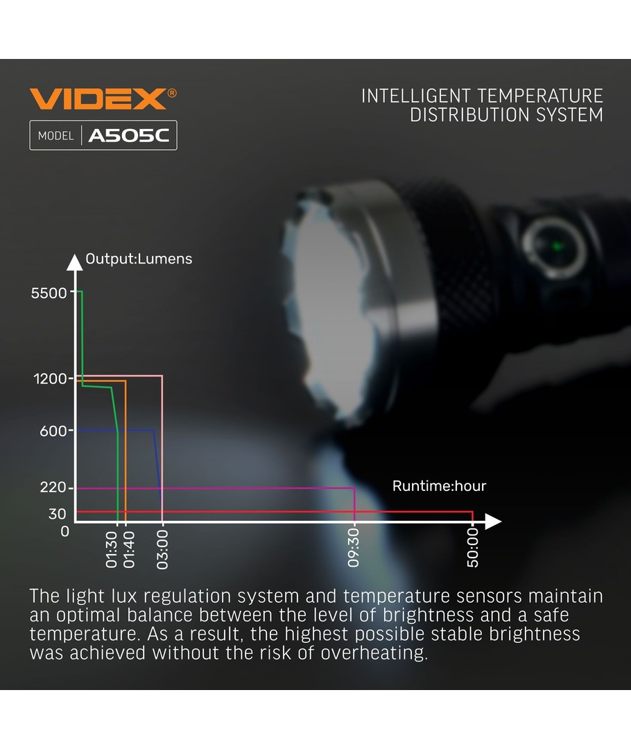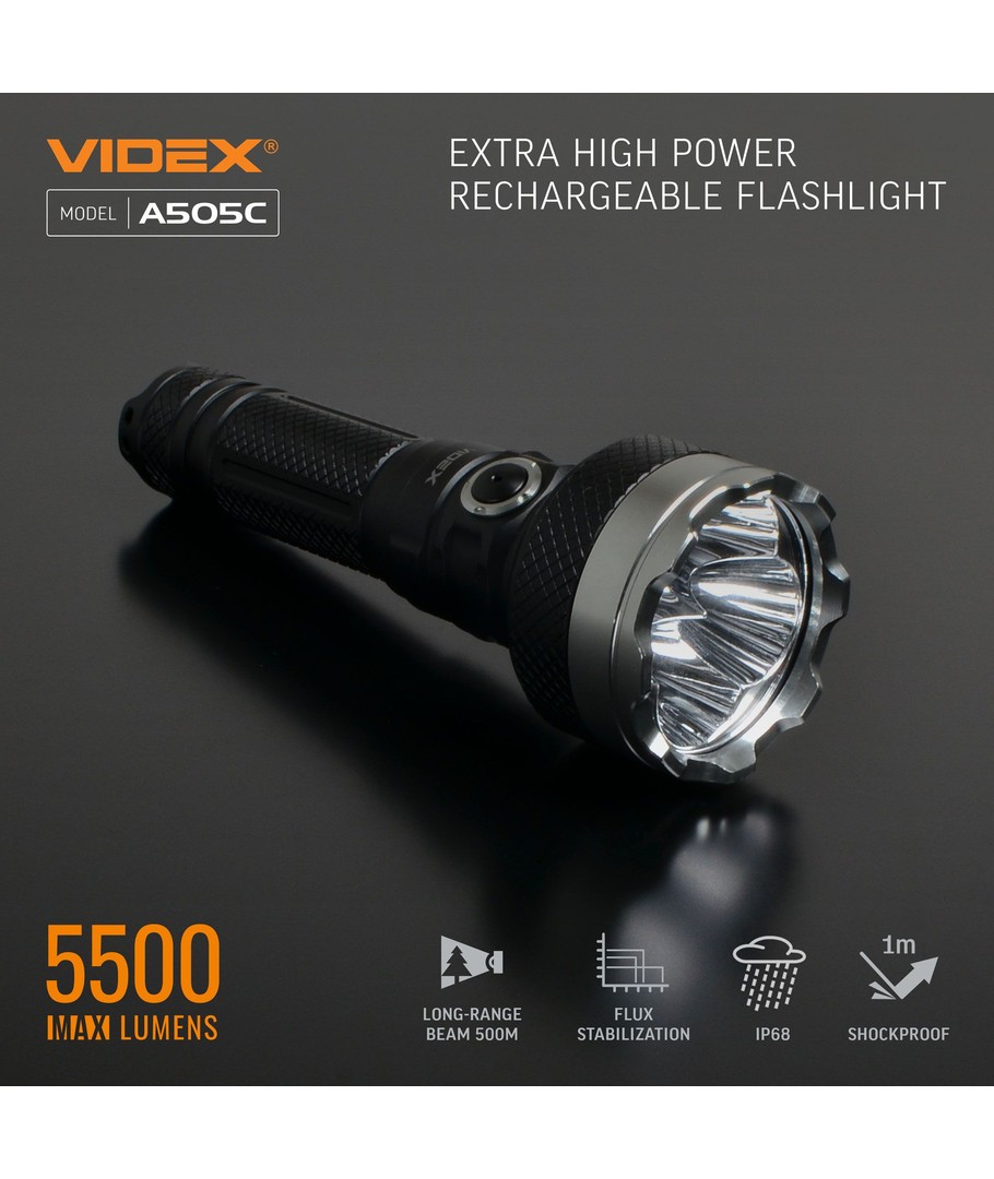 Med en ljusstyrka på 5500 lumen får du stark och tydlig belysning, perfekt för situationer som kräver mycket ljus. Trots sin kraftiga ljusstyrka har ficklampan en effektförbrukning på endast 20W, vilket gör den både ekonomisk och energieffektiv.