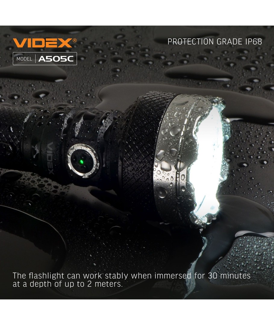 Den robusta designen inkluderar IP68-klassificering, vilket innebär att ficklampan är helt vattentät och kan sänkas ner i vatten till ett djup av 1 meter utan skador. Detta gör den idealisk för aktiviteter som camping, friluftsliv eller arbete i krävande miljöer.
