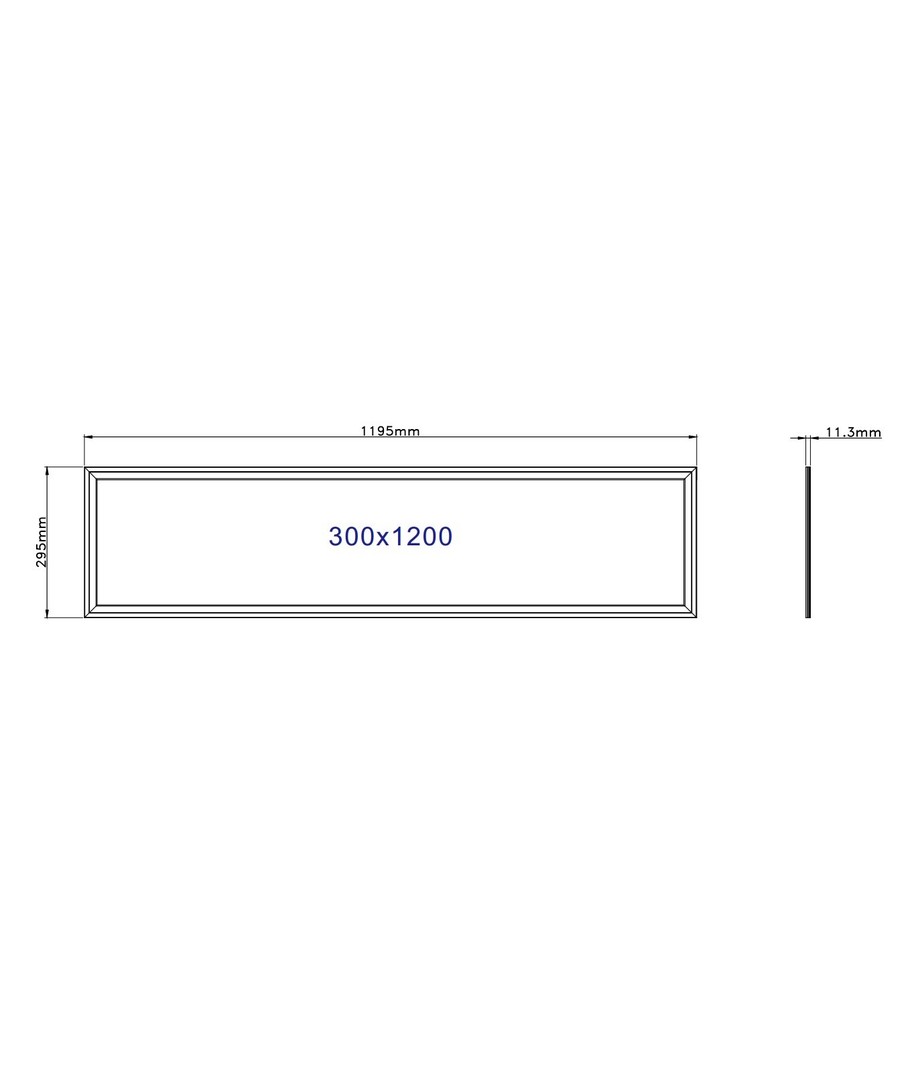 LED-panelen har en dimension på 295 x 11,3 x 1195 mm och är försedd med en integrerad ljuskälla.