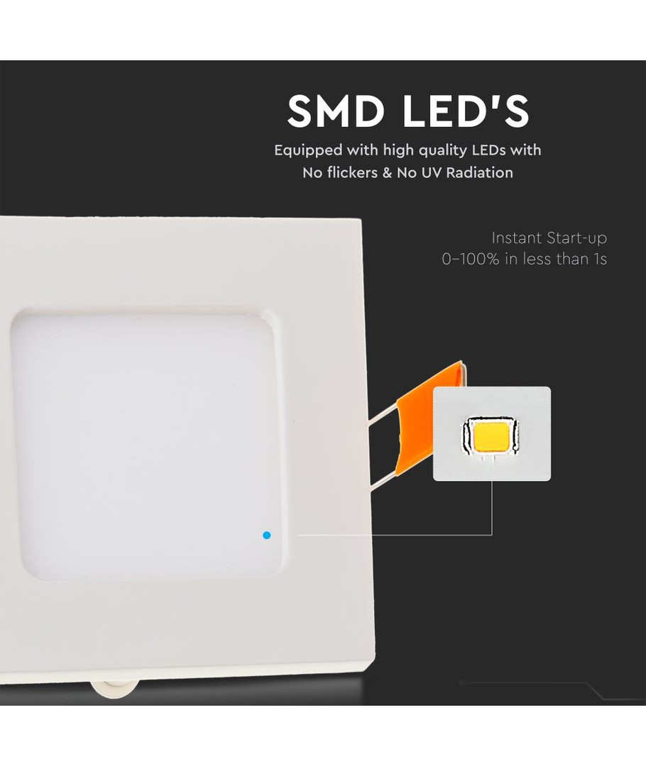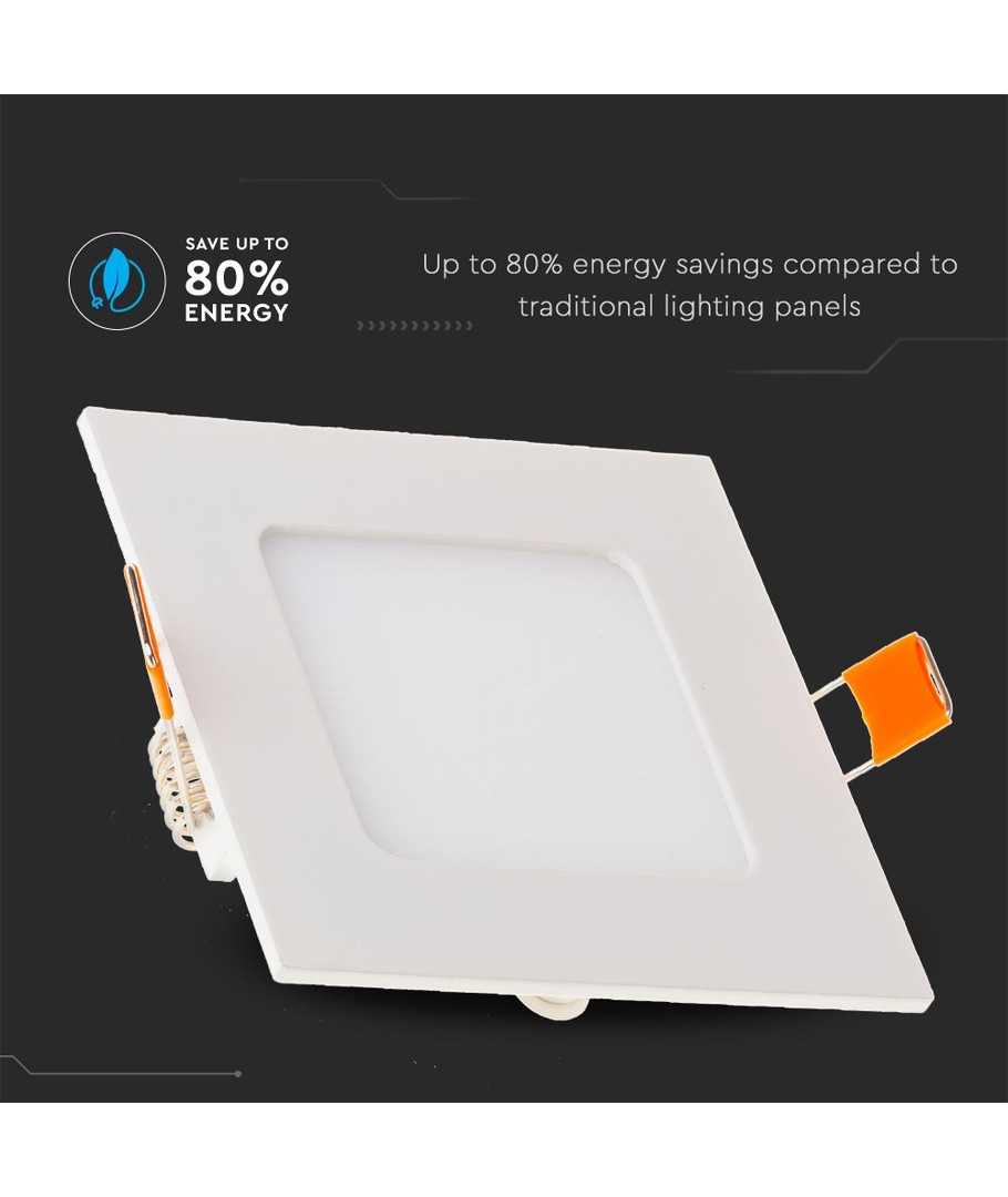 V-Tac 12x12cm, 6W LED infällnadspanel är en effektiv och elegant belysningslösning för alla rum.