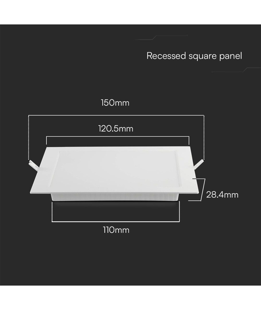 Dimensioner och Hålstorlek: Den eleganta designen med mått på 120,5 x 28,4 x 120,5 mm och en hålstorlek på 155 mm gör denna downlight perfekt för precisionspassad installation i tak.