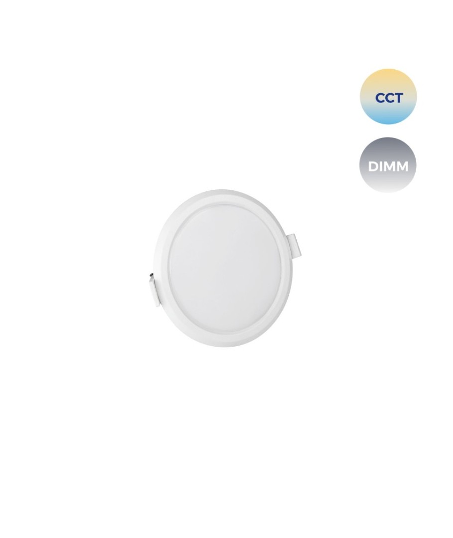 Vacker Smart Home infälld panel der kan växla mellan varm vit, neutral vit och kall vit med vit kant.
