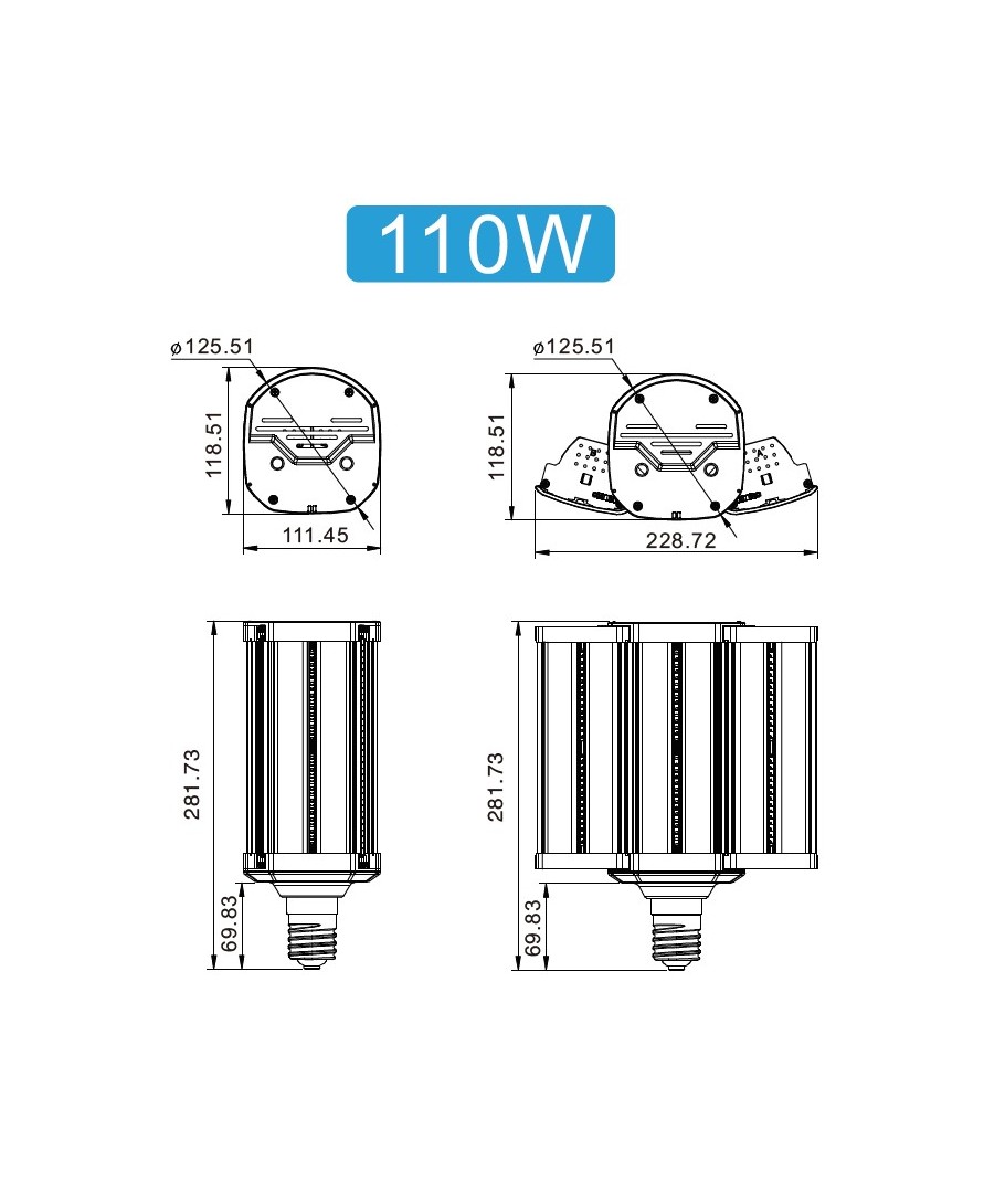 Upplev överlägsen belysning med denna 110W LED Kraftiga lampa, perfekt för både industriell och kommersiell användning. Med en imponerande ljusstyrka på 13200 lumen och en bred spridning på 270° säkerställer den en jämn och effektiv spridning av ljuset i alla riktningar.