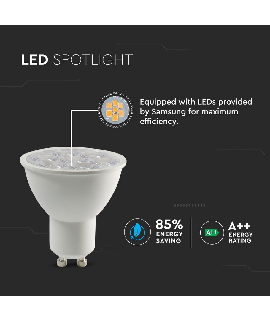 Utrustad med Samsung LED-chip, garanterar denna LED-spot en lång livslängd och en stabil prestanda. Dessutom erbjuds en 5 års fabriksgaranti, vilket försäkrar din investering och ger trygghet i ditt belysningsval.