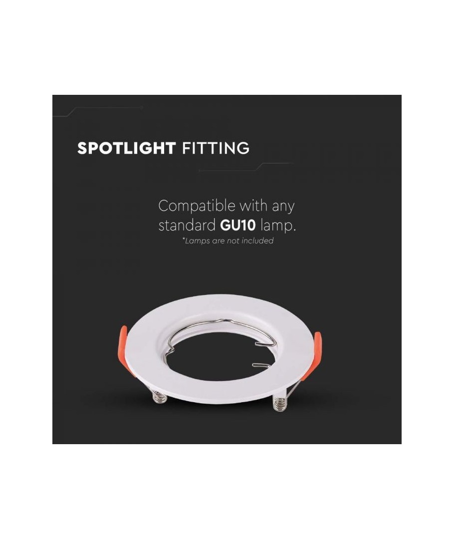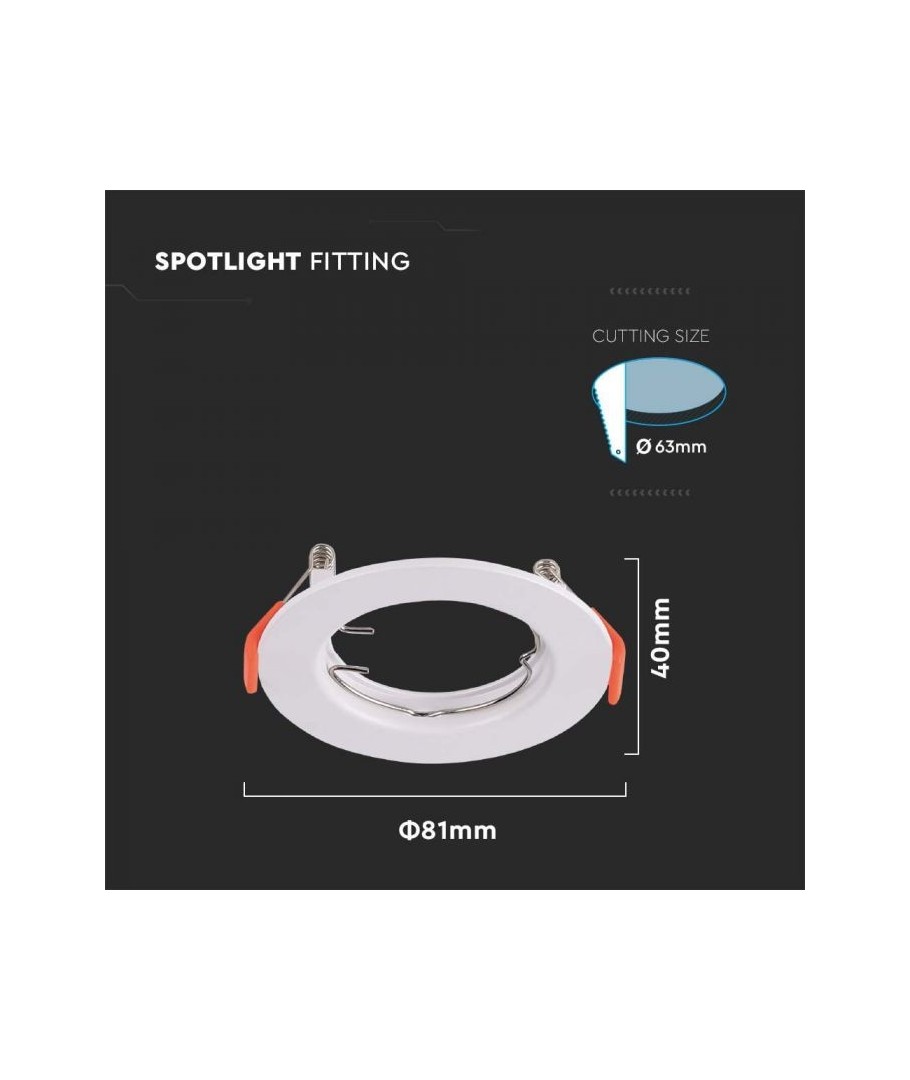 Hål: Ø7,5 cm, Mått: Ø8,4 cm, Svart reflektor, vit kant