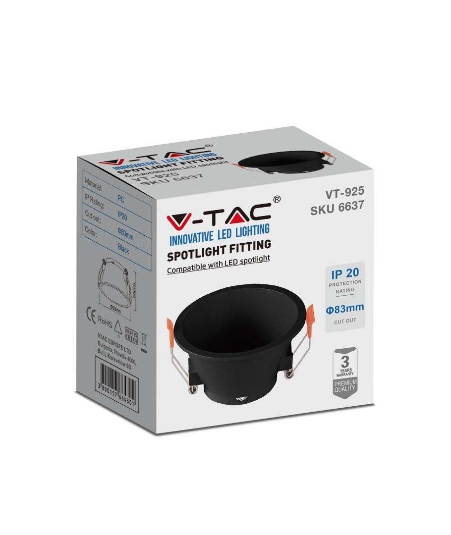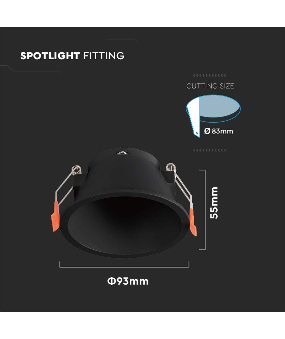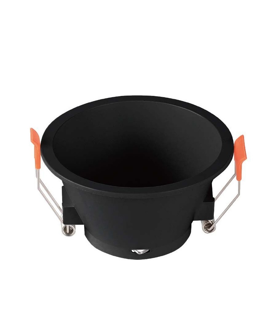 Hål: Ø7,5 cm, Mått: Ø8,4 cm, Svart reflektor, vit kant