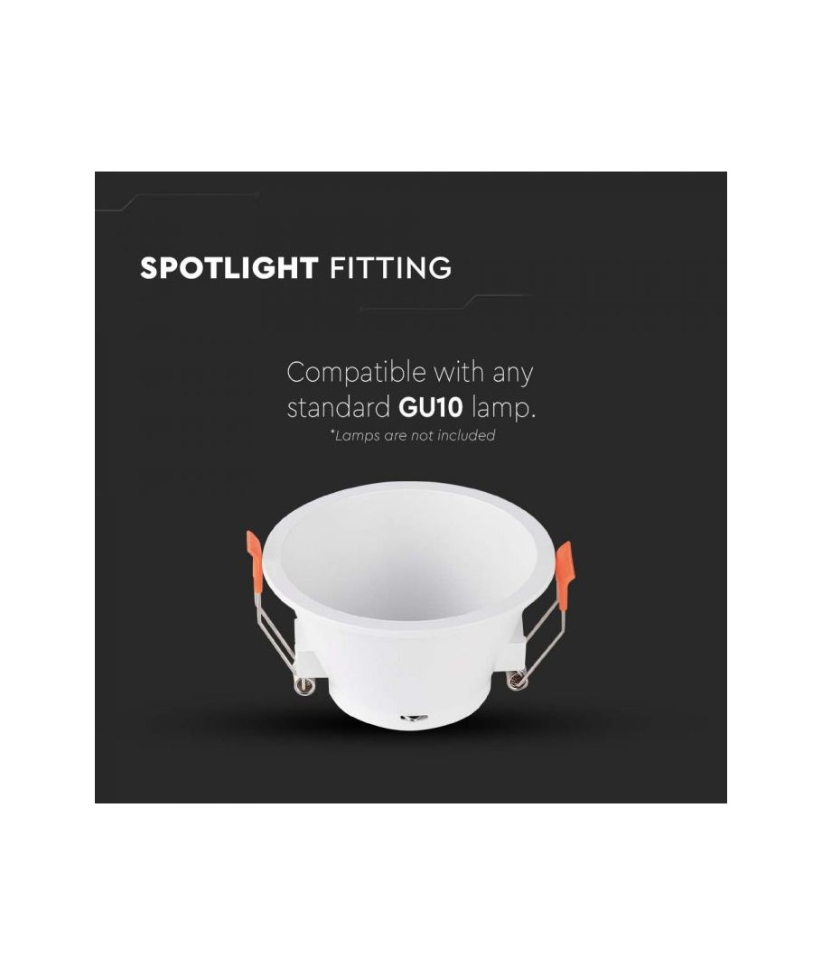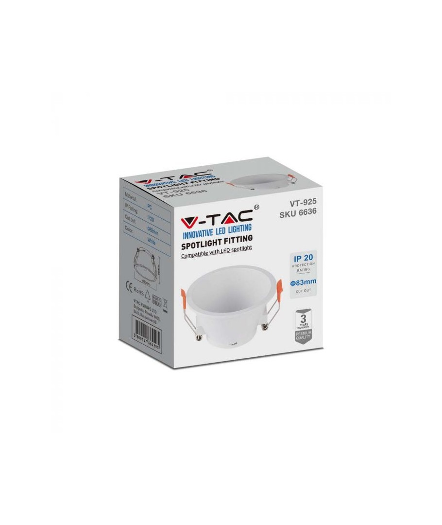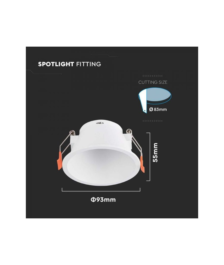 Hål: Ø7,5 cm, Mått: Ø8,4 cm, Svart reflektor, vit kant