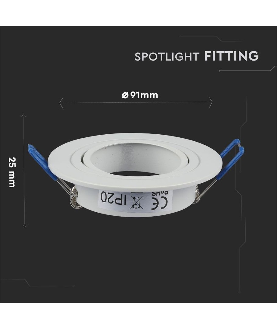Hål: Ø7,5 cm, Mått: Ø8,4 cm, Svart reflektor, vit kant