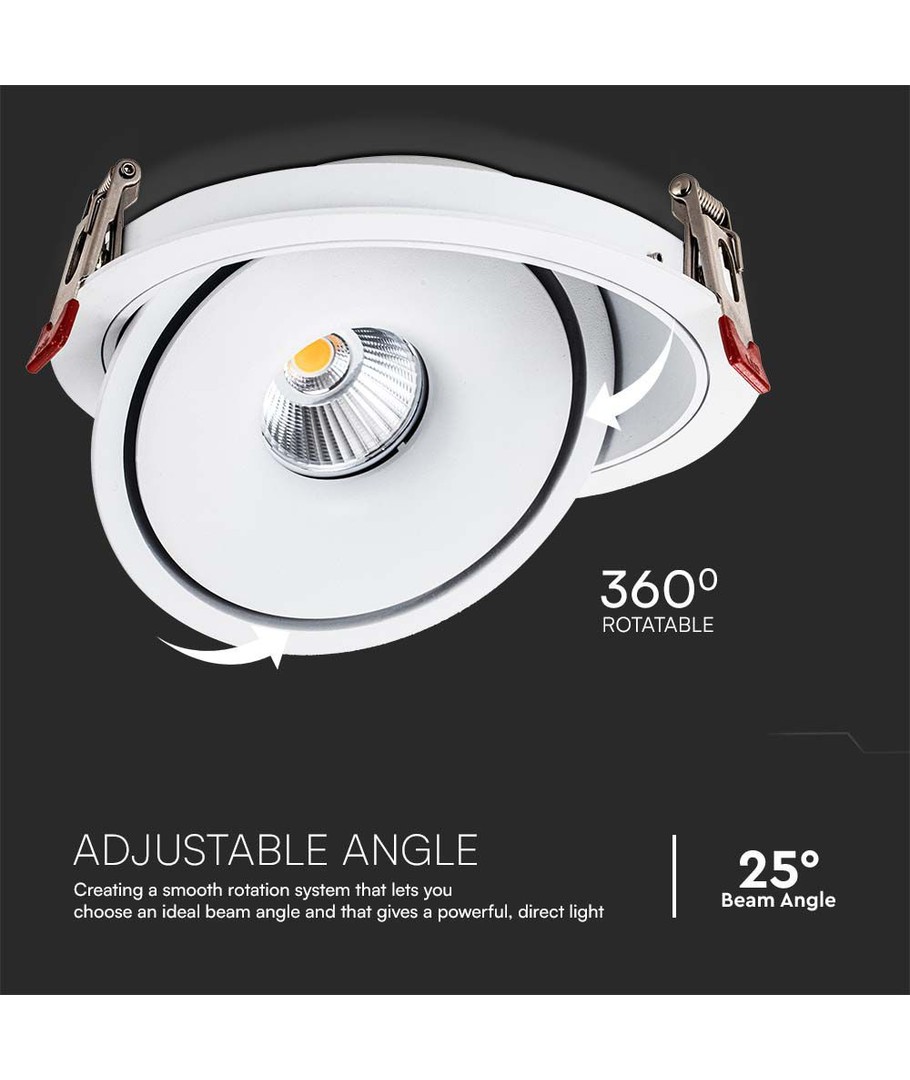 Vår downlight erbjuder en ljusstyrka på 1408 lm, vilket ger tillräckligt med ljus för de flesta hem och kontorsutrymmen. Med ett fokuserat ljus på 25 grader säkerställer lampan en kontrollerad och kraftfull belysning.