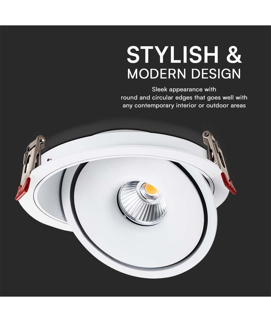Denna downlight erbjuder optimal ljuskvalitet och är utformad för att enkelt fällas in i taket. Med sin stilrena design och vita kant smälter den in i modernt inredda hem och kontor.