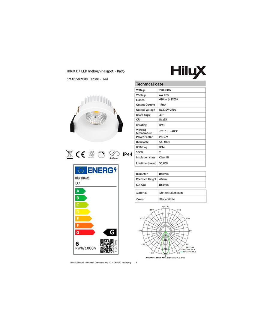 HiluX D7 Gen2 är en kompakt och lättinstallerad lösning för alla slags miljöer, med dimensionerna 49 x Ø80 mm och en hålstorlek på 680 mm. Den passar därför i de flesta standarduttag och är enkel att integrera i olika belysningslösningar.