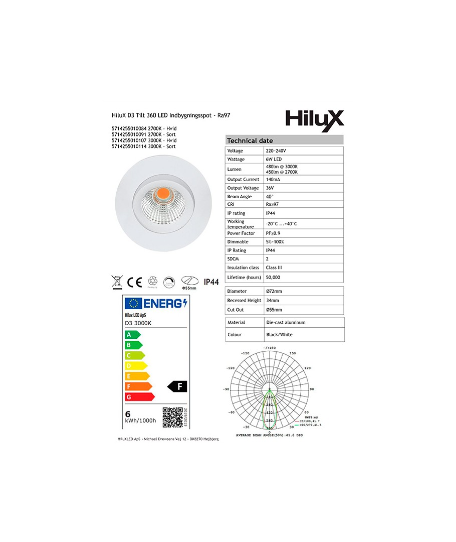 Förvandla ditt rum med en exceptionell ljuskvalitet och mångsidighet genom att använda denna förstklassiga inbyggnadsspot. Med en effekt på 6W och anslutning till 230V, ger denna spot ett kraftfullt och effektivt ljus.