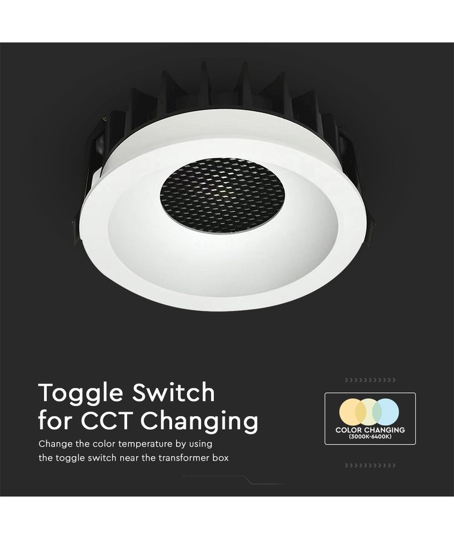 Med en skyddsklassning på IP20, är denna downlight avsedd för inomhusbruk och är inte vattentät. Den levereras med en integrerad ljuskälla för en smidig installation och långvarig prestanda. Perfekt för både hem och kommersiella miljöer där det krävs noggrant kontrollerat och estetiskt tilltalande ljus.