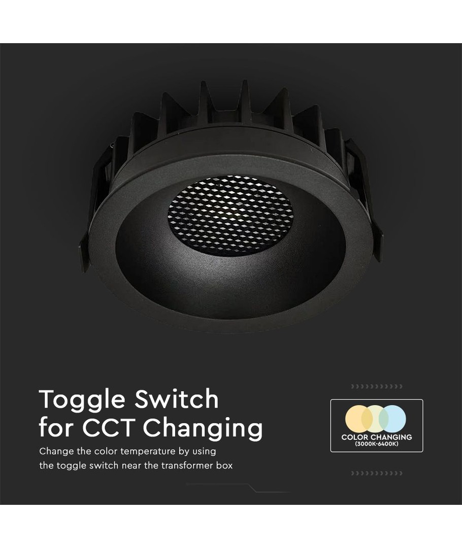 Upplev den funktionella och stilfulla 18W Bländfri RA90 CCT Downlight, som kombinerar hög färgåtergivning med justerbar ljusfärg och en modern design.