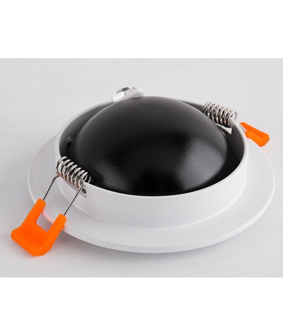 Hål: Ø7,5 cm, Mått: Ø8,4 cm, Svart reflektor, vit kant