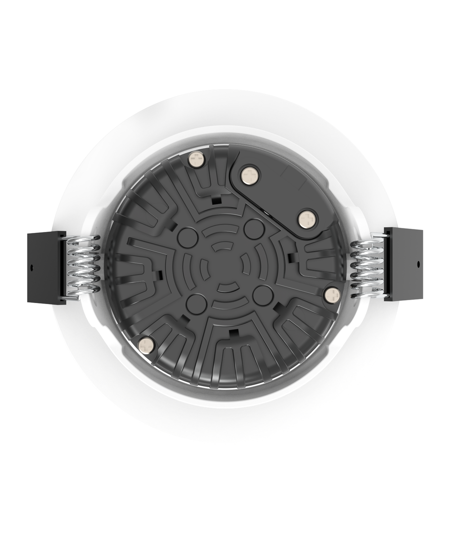 Hål: Ø7,5 cm, Mått: Ø8,4 cm, Svart reflektor, vit kant