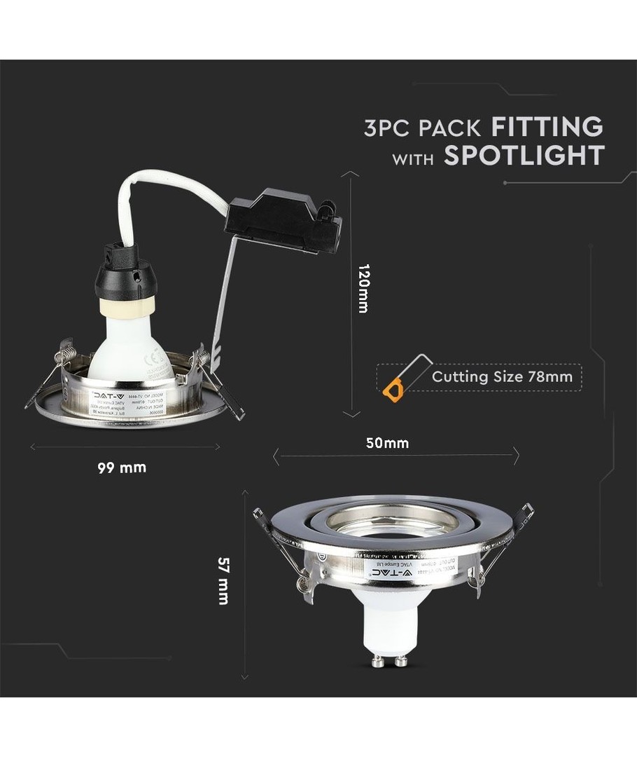3 paket GU10 infällda downlight + GU10 5W lampor.