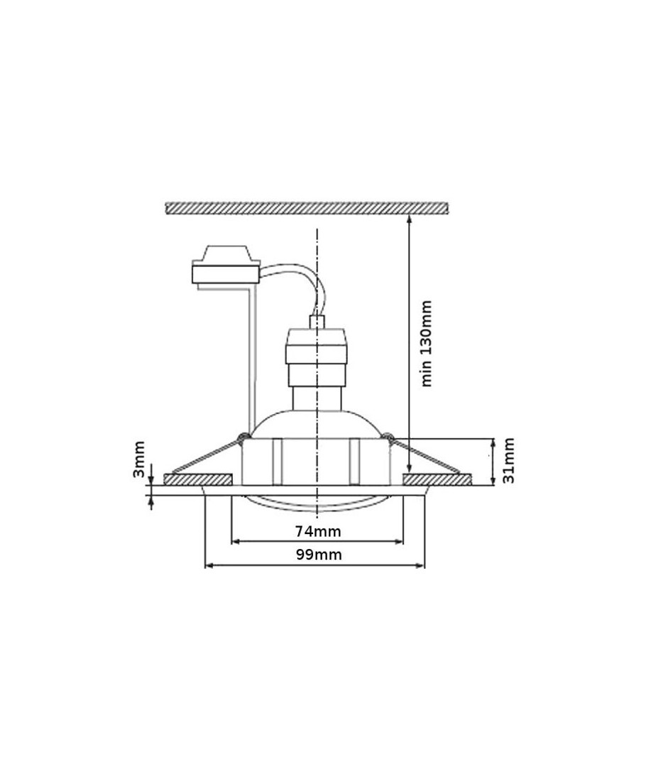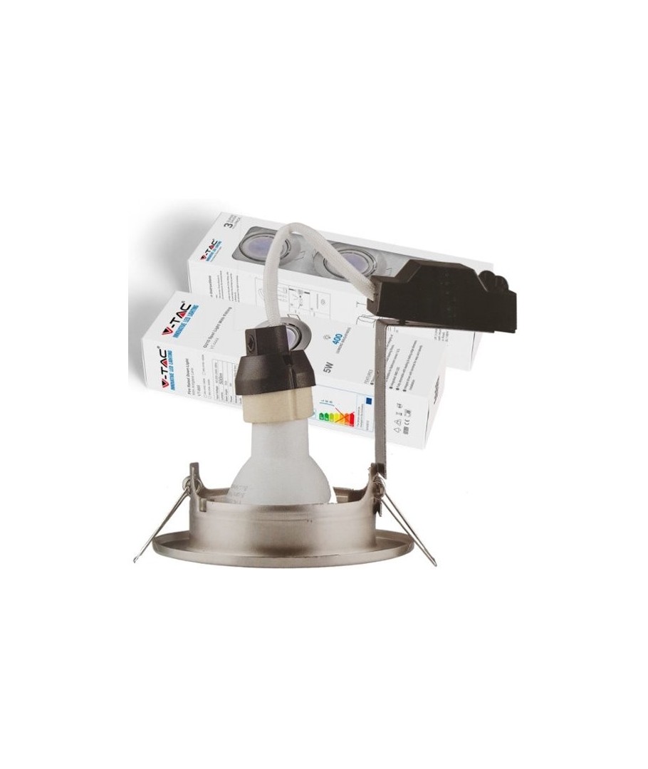 Komplett set med infälld downlight, GU10-uttag / hållare och GU10-ljuskälla.
