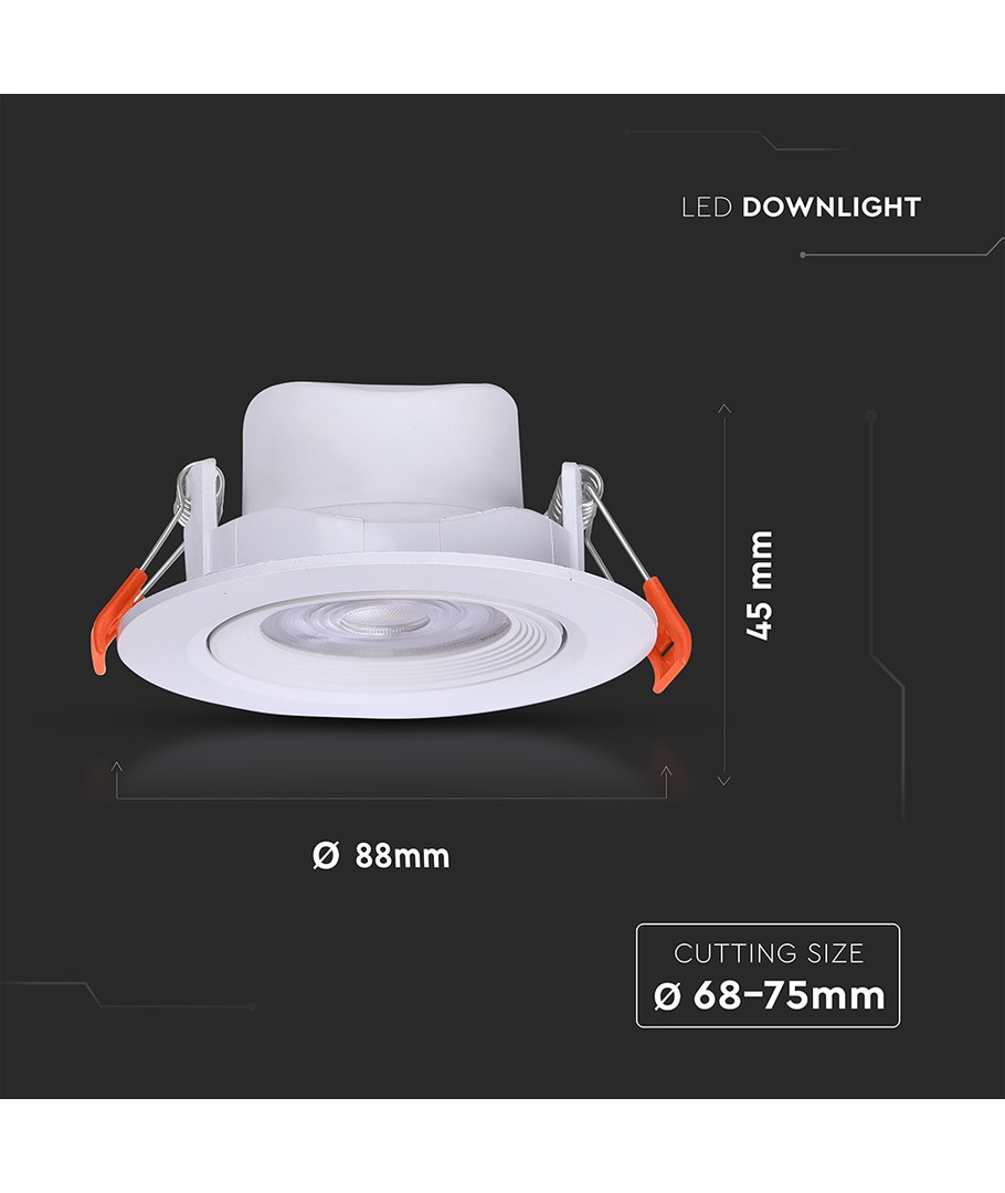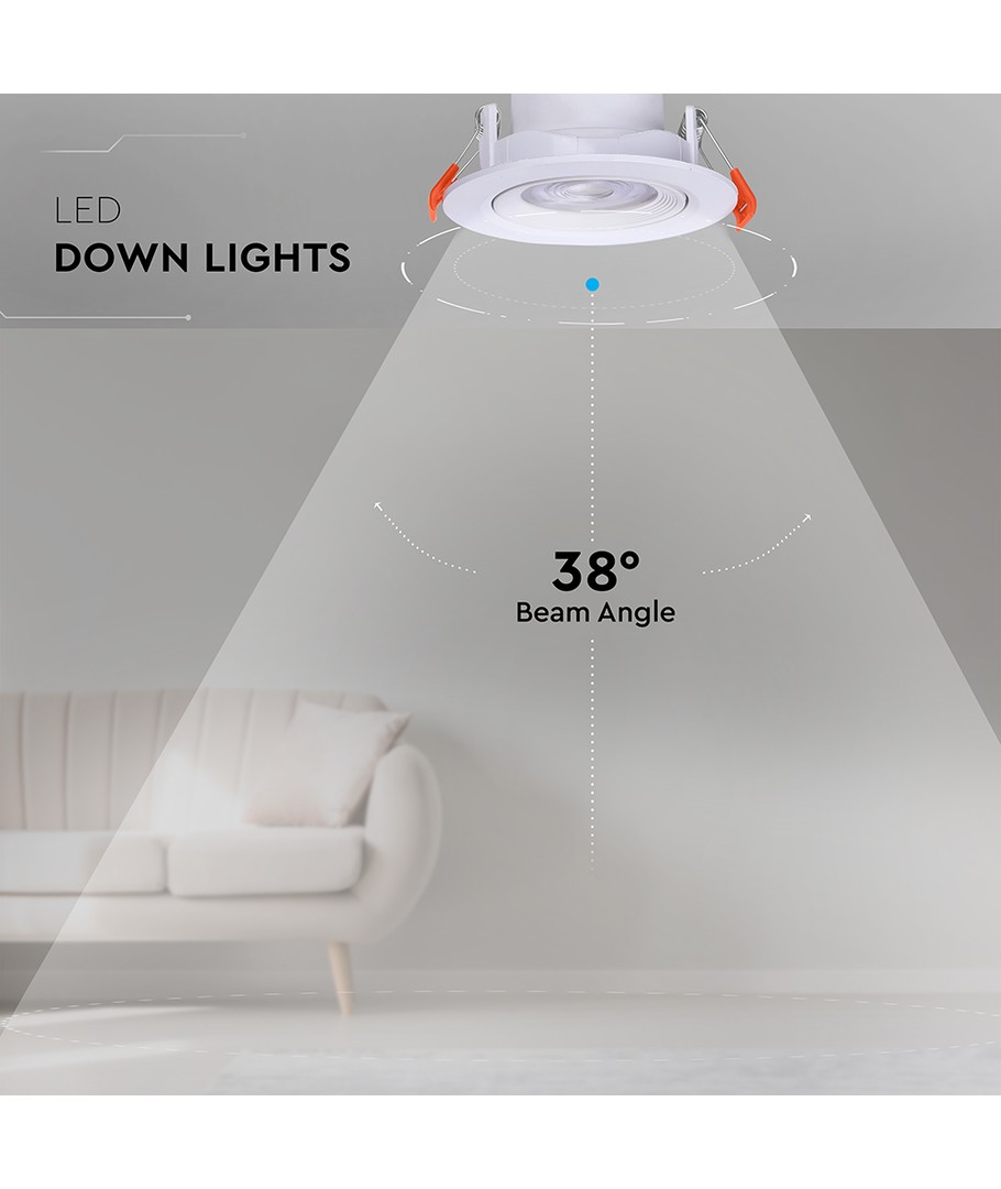 Denna moderna infällningsspot är designad för att ge effektivt och kontrollerat ljus i olika miljöer. Med en effekt på 7W och en ljusstyrka på 510 lm, erbjuder den justerbar och fokuserad belysning som täcker 38 grader.