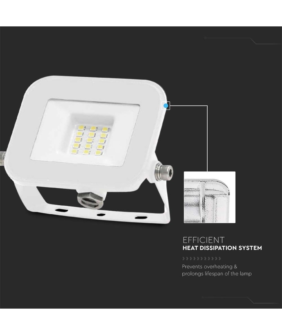 V-Tac 10W LED strålkastare är perfekt för att upplysa områden som kräver hög ljusstyrka och ett naturligt ljus utan blå eller gula toner.