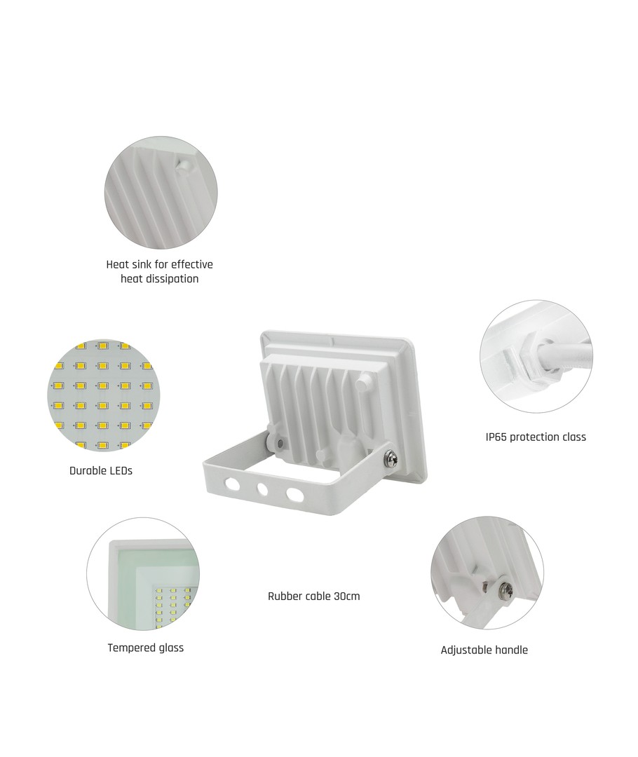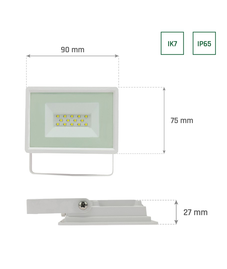 Denna strålkastare är kompakt i storleken med dimensionerna 90 x 75 x 27 mm. Med dess stilrena vita färg smälter den lätt in i alla miljöer.