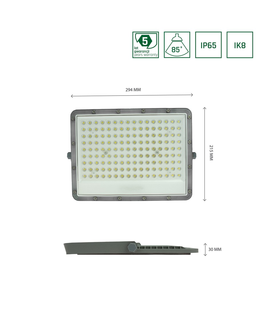 Strålkastaren avger en ljusstyrka på 8600 lm och har en bred spridning på 85 grader, vilket säkerställer en jämn och effektiv ljusfördelning oavsett miljö. Ljuskvaliteten är mycket hög med ett RA-värde på 80-85, vilket innebär att ljuset återger färger naturligt och vackert.