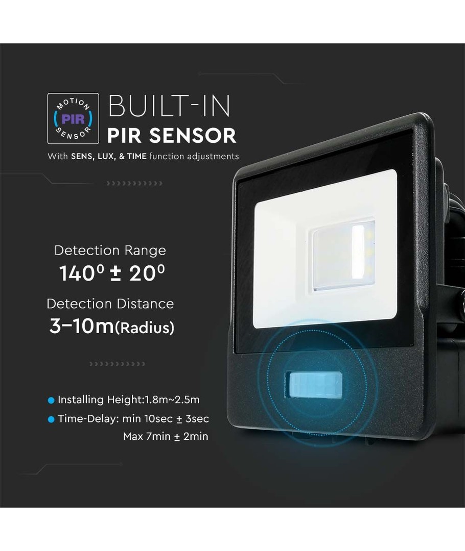 Robust byggd strålkastare med inbyggd PIR-sensor.