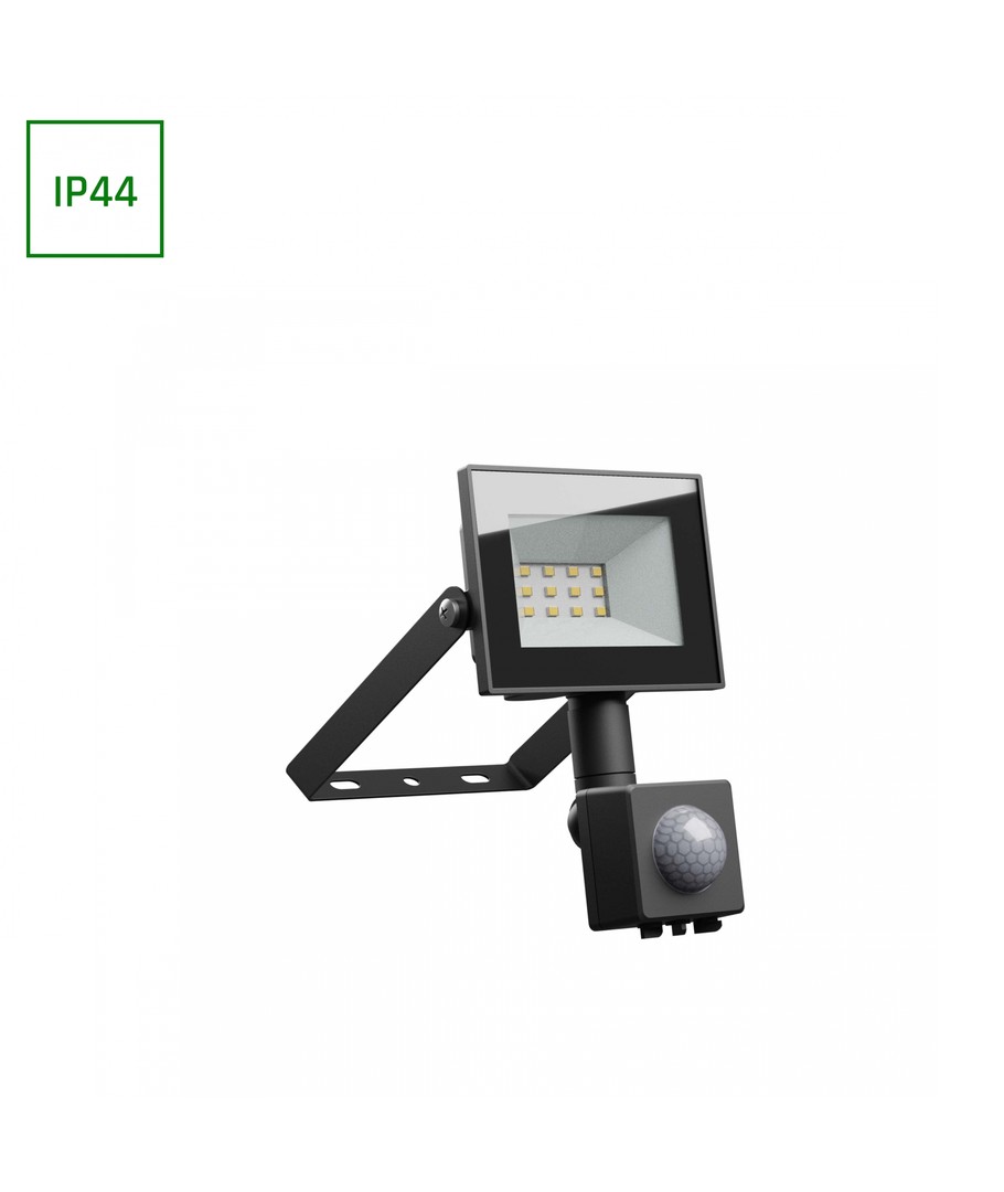 Med en IP44-klassificering är strålkastaren skyddad mot fuktig luft och vattenstänk, vilket gör den idealisk för utomhusbruk. Strålkastaren är utrustad med en PIR-sensor som automatiskt aktiverar ljuset vid rörelse, vilket ytterligare förbättrar både säkerhet och energibesparing.
