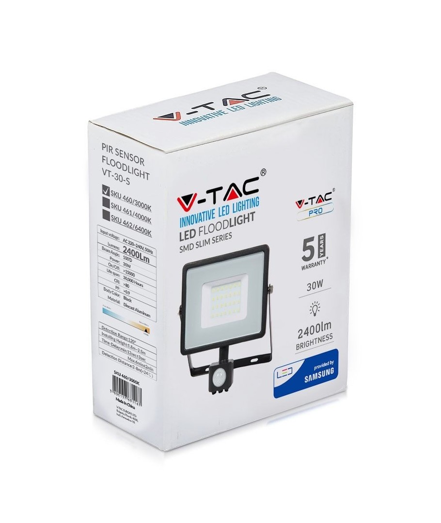Upplev kraftfull och energieffektiv belysning med denna 30W LED-strålkastare som använder det pålitliga Samsung LED-chipet. Ansluts enkelt till 230V och erbjuder en ljusstyrka på 2400 lm, vilket ger ett kraftfullt ljusflöde med en bred spridning på 100 grader för optimal ljusfördelning.