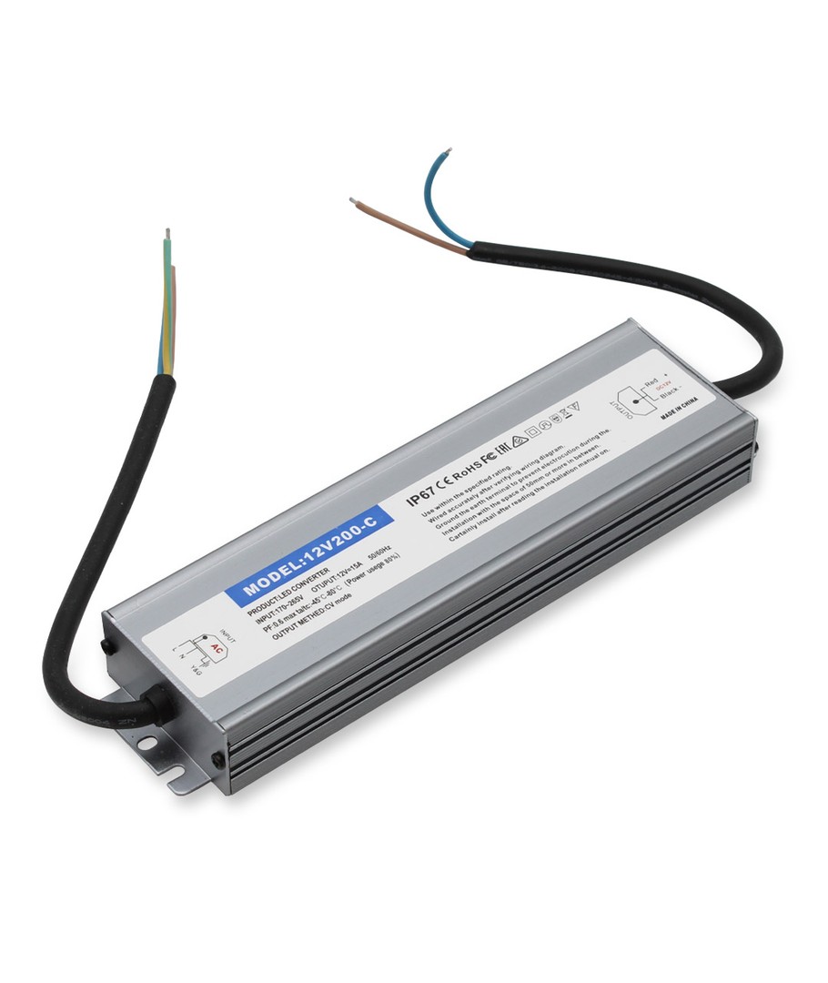 Upptäck den högeffektiva 200W strömförsörjningen som är perfekt anpassad för att driva LED belysning. Detta robusta aggregat är utformat för att anslutas till en 230V källa och ger en konstant 12V utmatning, perfekt för att stödja ditt belysningsprojekt.