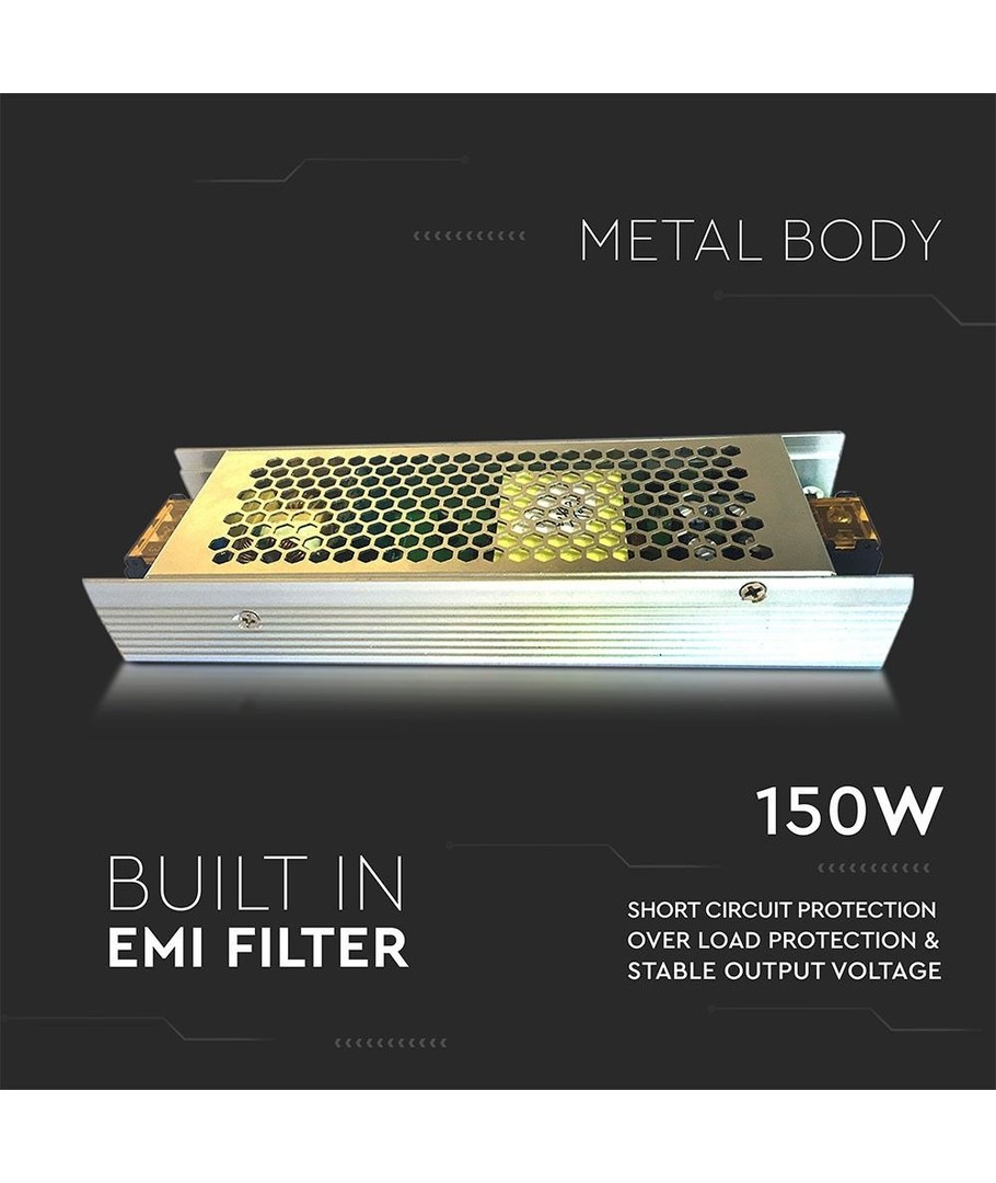 Denna 150W / 24V DC strömförsörjning är idealisk för de som söker en pålitlig energikälla för inomhusbruk. Perfekt utformad för att driva LED-belysning med maximal effektivitet.