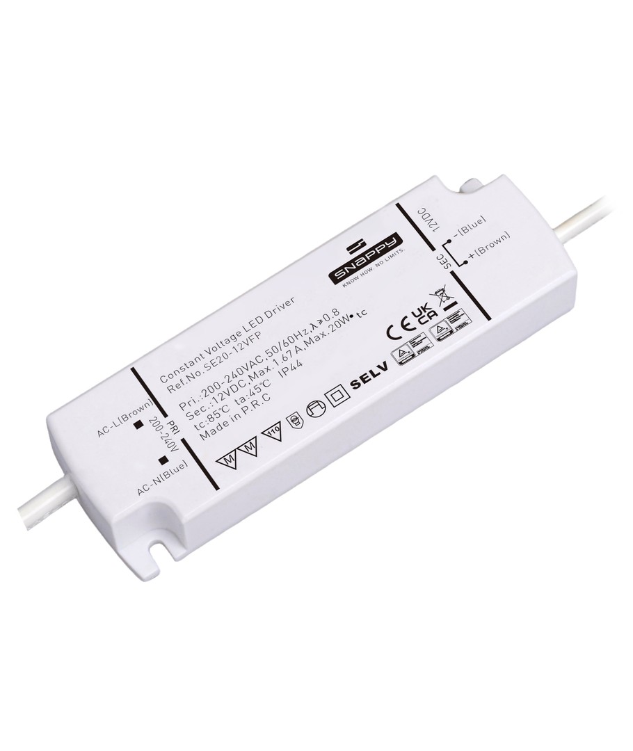 Idealisk för användning med en mängd olika LED-ljusinstallationer, Snappy 20W erbjuder en tillförlitlig energikälla för både inomhus och utomhus miljöer. Från trädgårdsbelysning till kommersiella skyltar, säkerställer den rätt ström och prestanda.