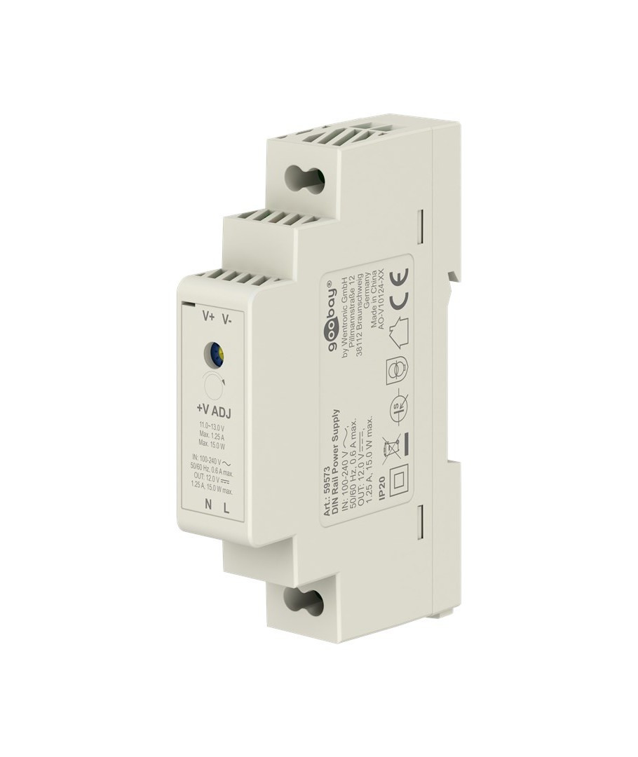 12V DC 1,25A strömförsörjning för DIN-skena montering.