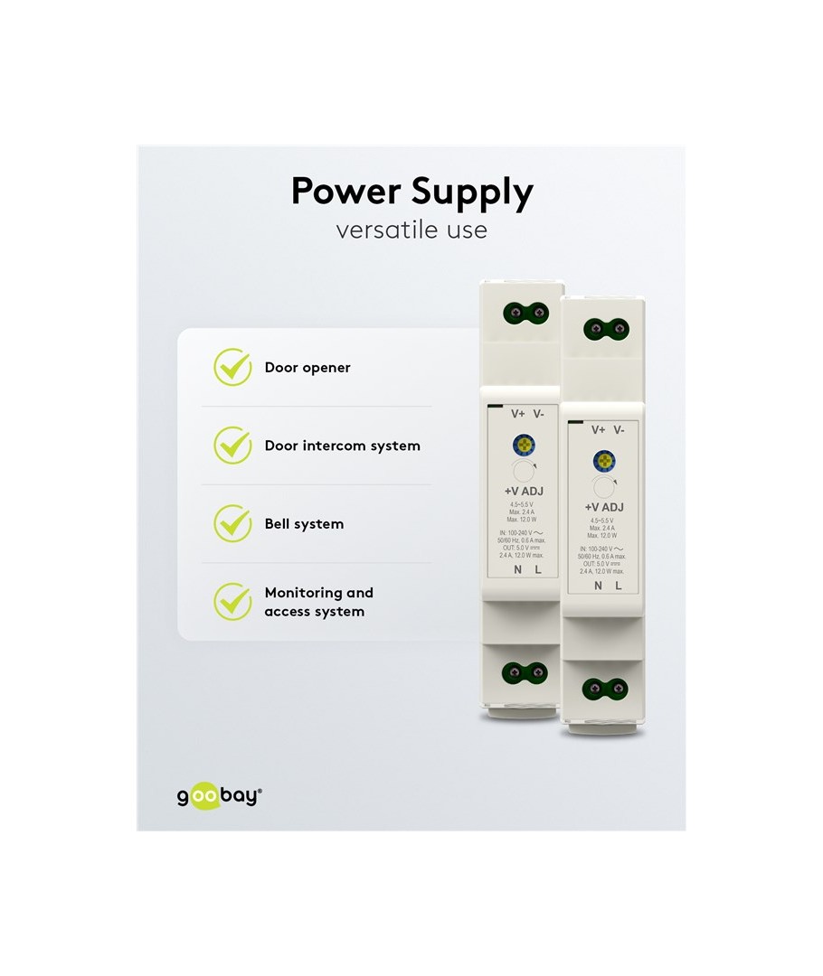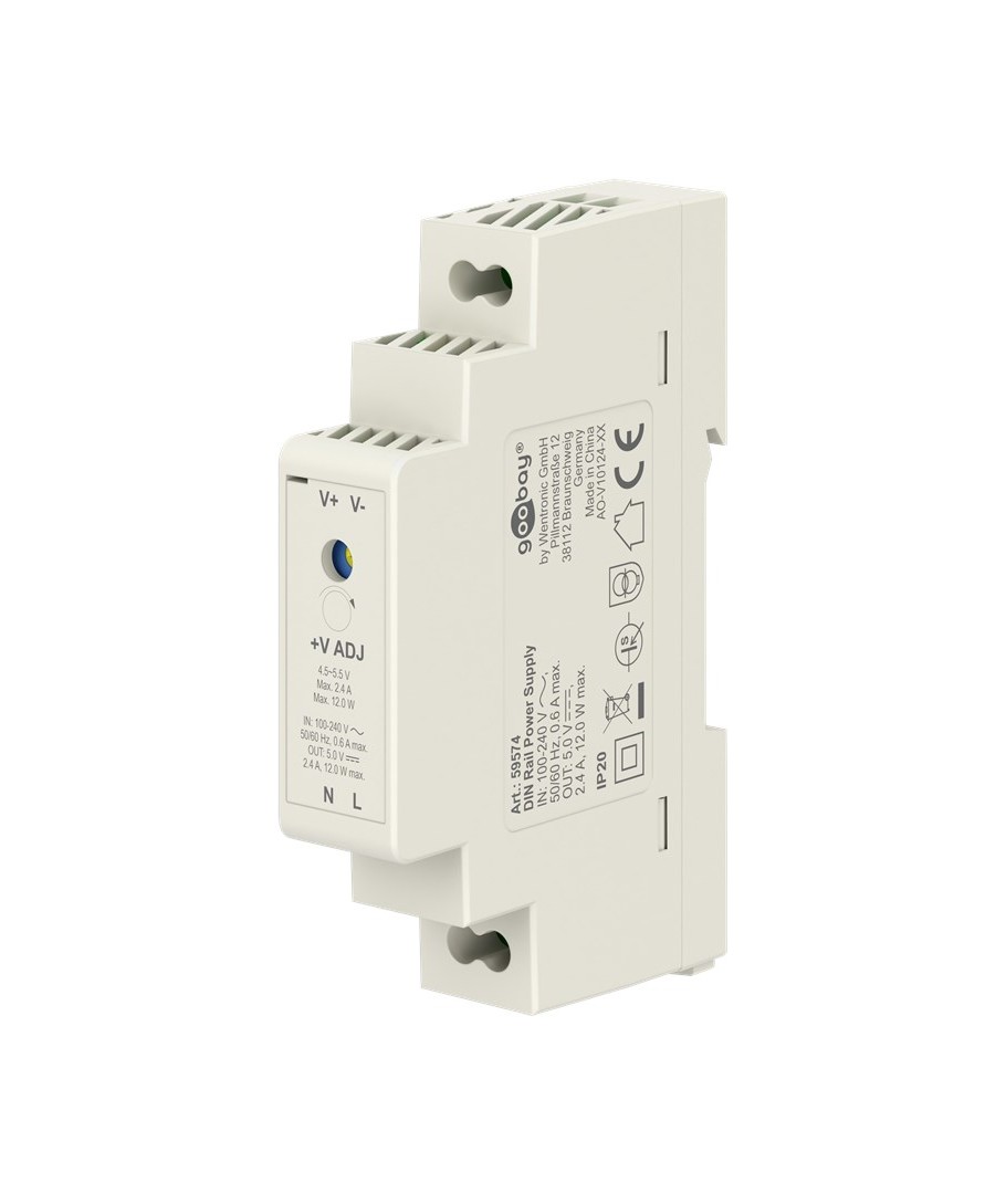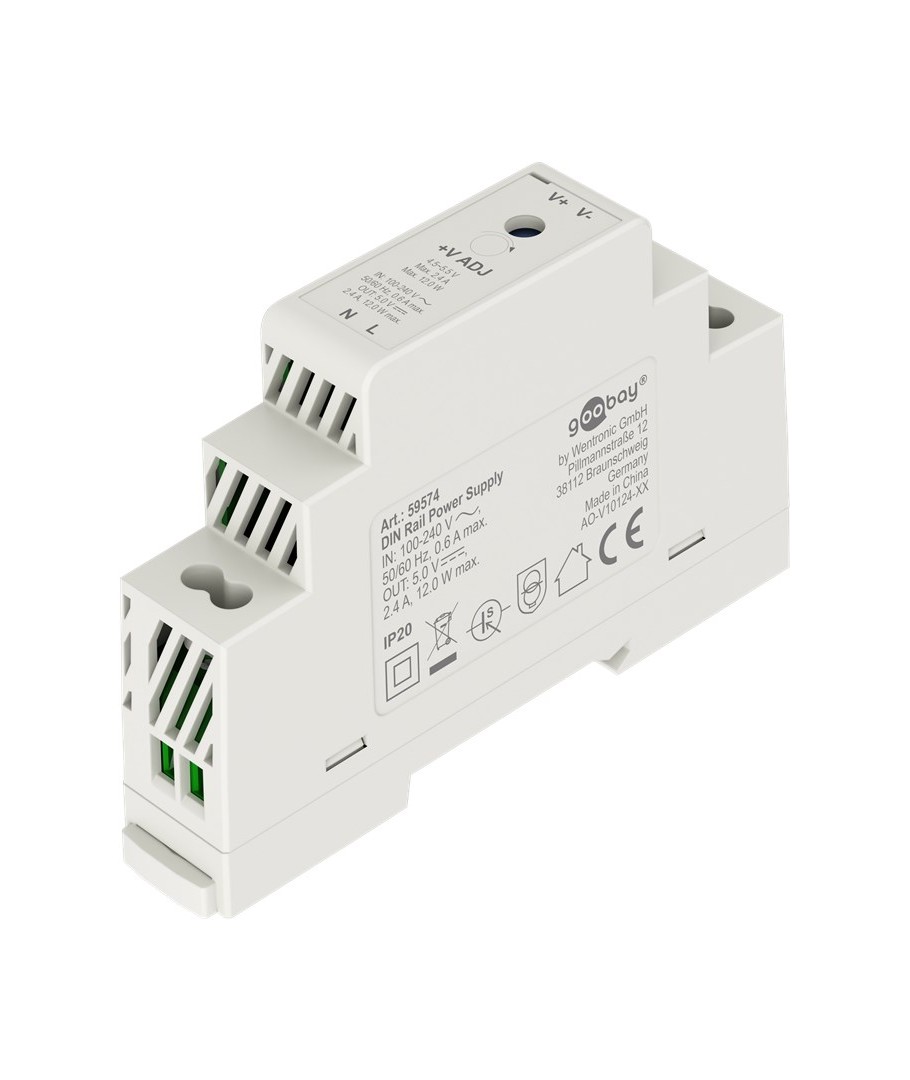 5V DC 2,4A strömförsörjning för DIN-skena montering.