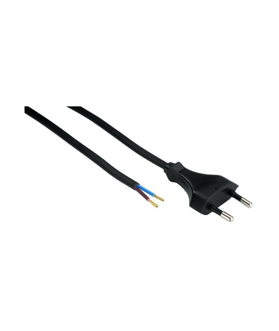 1,5 meter strömkabel, 250V - IP20 inomhus, Svart, Eurokontakt och skalade ledningar, 2,5A Expandera
