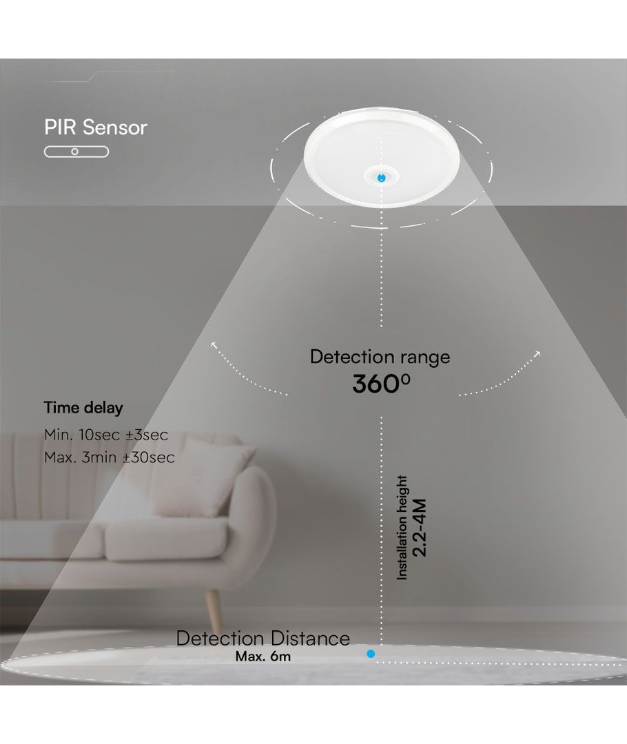 Sensorräckvidd: Upp till 6m och 360 graders vinkel.