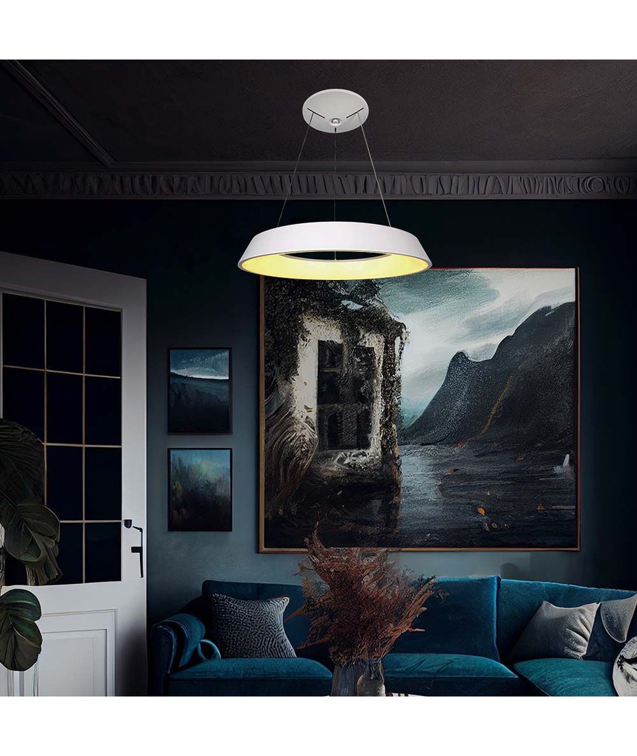 Den slanka designen i vit färg gör denna ljuskrona till en omedelbar blickfångare i varje rum. Med en färgtemperatur på 3000K ger den ett varmvitt ljus som skapar en avkopplande och inbjudande atmosfär. Perfekt för både modernt och klassiskt inredda miljöer.