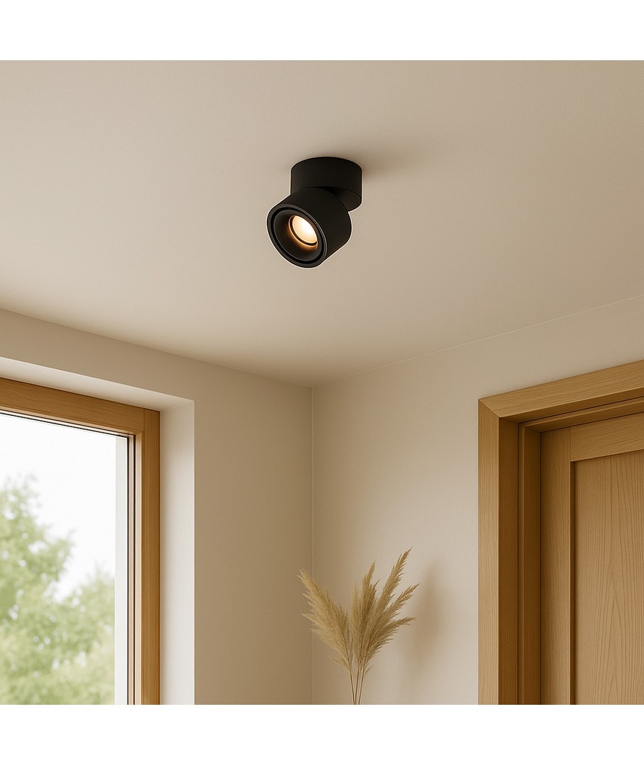 Denna justerbara LED takspot i svart är det perfekta valet för den som söker hög ljuskvalitet och en elegant belysningslösning som lätt kan anpassas till olika miljöer och behov.