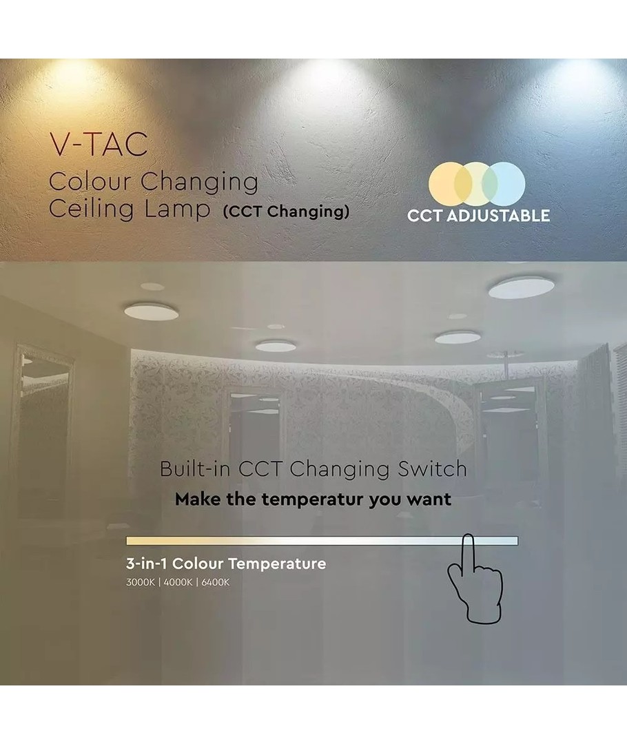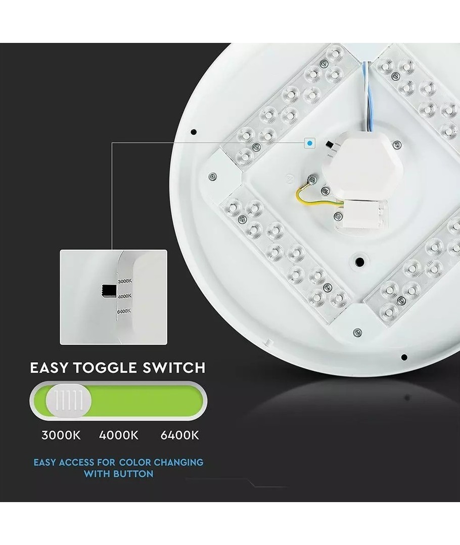 Denna stilrena 18W LED taklampa erbjuder tre justerbara ljusfärger, vilket gör den perfekt för att anpassa stämningen i alla rum. Lampan, med en diameter på 31 cm, är både kompakt och kraftfull.