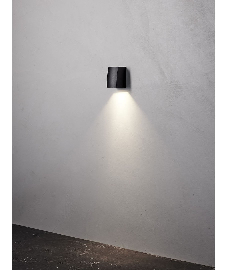 Med sina rena linjer är Ask en utomhusvägglampa som matchar nordisk design och modern byggstil. Ljuset och den goda avskärmningen ger en snygg spoteffekt.