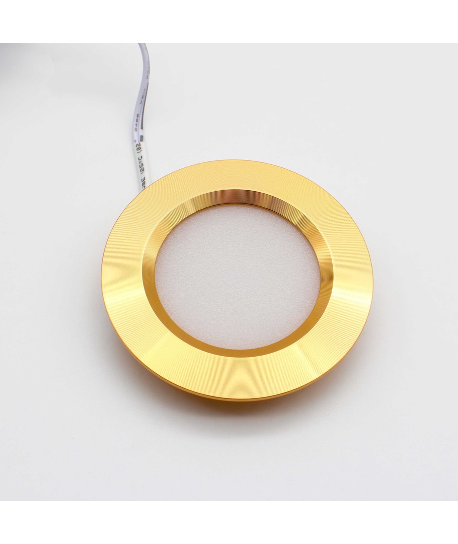 12V DC, Mått: Ø6 cm, utanpåliggande, skåpsbelysning, borstat stål