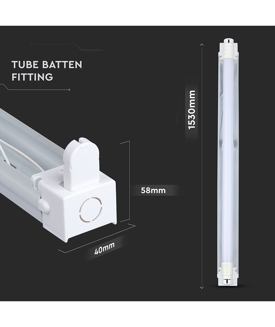 För 2x 150cm LED-rör, IP65 vattentät