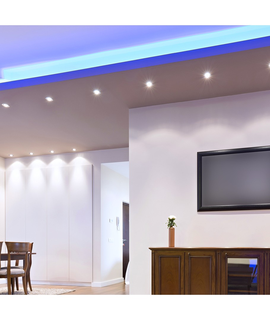 Den breda spridningsvinkeln på 110 grader gör detta spotljus perfekt för att belysa större ytor med ett neutralt ljus som inte domineras av blå eller gula toner. Detta garanterar att upplysta produkter och ytor framstår helt naturligt.