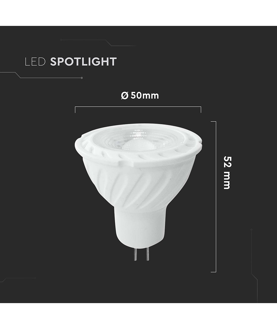 Med en kompakt design och dimensioner på 52 x 50 mm, passar det här spotljuset lätt in i de flesta armaturer med en MR16 eller GU5.3 sockel. Observera att detta spotsljus har en IP20-klassificering, vilket innebär att det inte är vattentätt och därmed bäst lämpat för inomhusbruk.