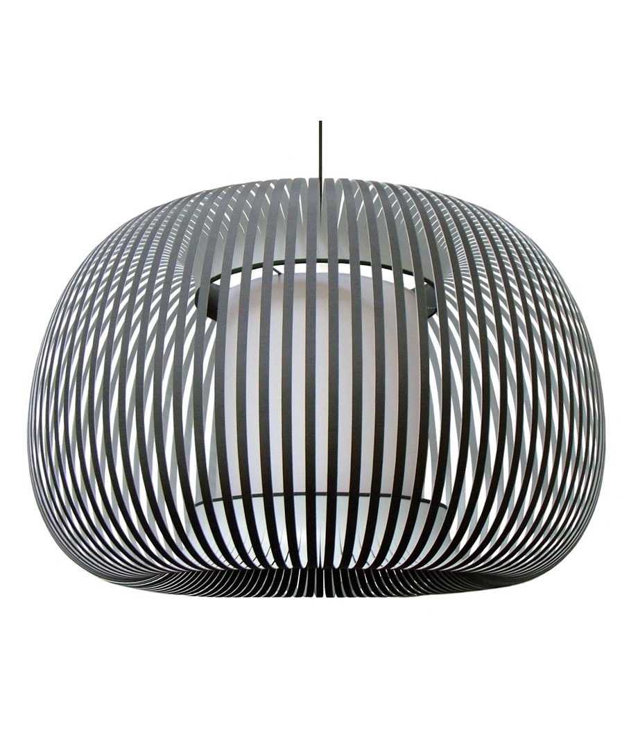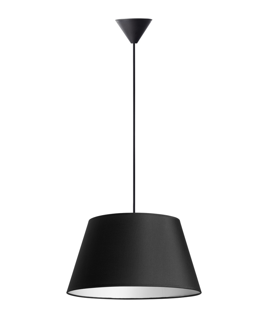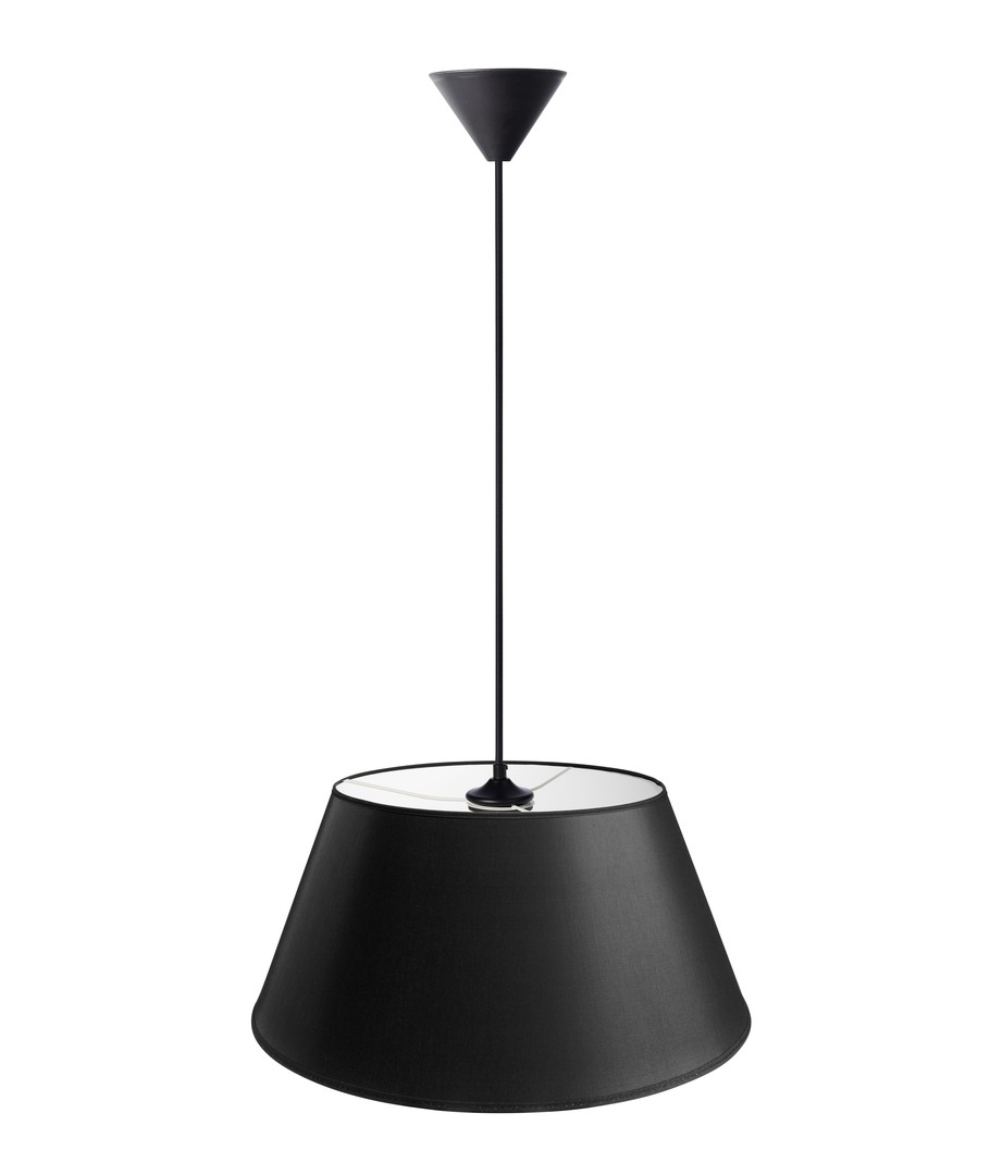 Vacker, konformad pendellampa från Nielsen Light. Vit insida, svart tyg utsida. 450 mm botten / 310 mm topp. E27.