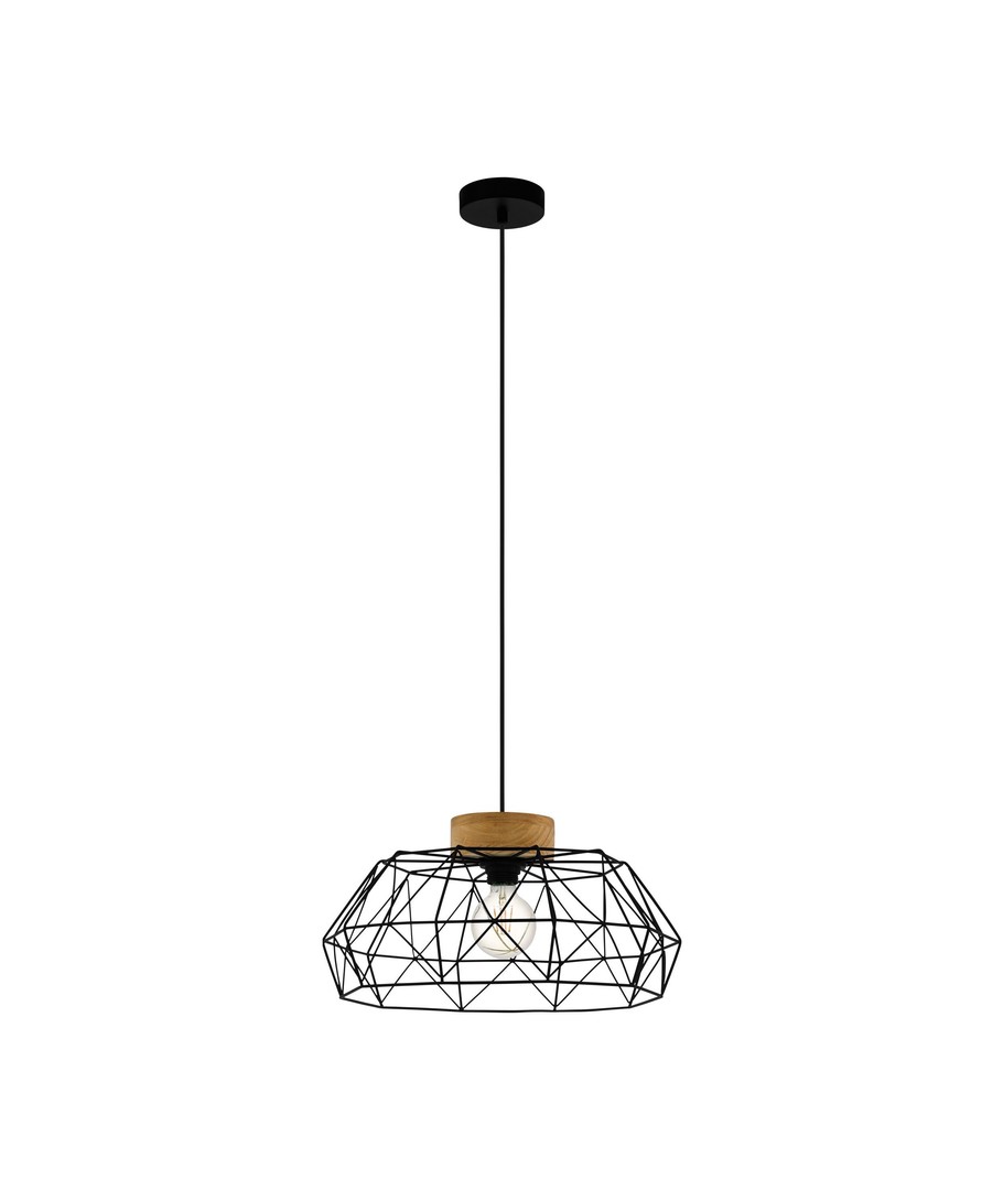 Padstow pendel lampen fra EGLO, af træ og stål, med en E27 fatning.