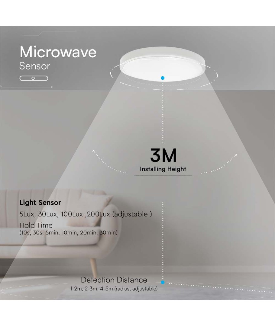 Uppgradera ditt belysningssystem med denna moderna och effektiva ljuskälla. Utformad med mikrovågssensor, gör den att ljuset tänds automatiskt när rörelse detekteras inom dess räckvidd.