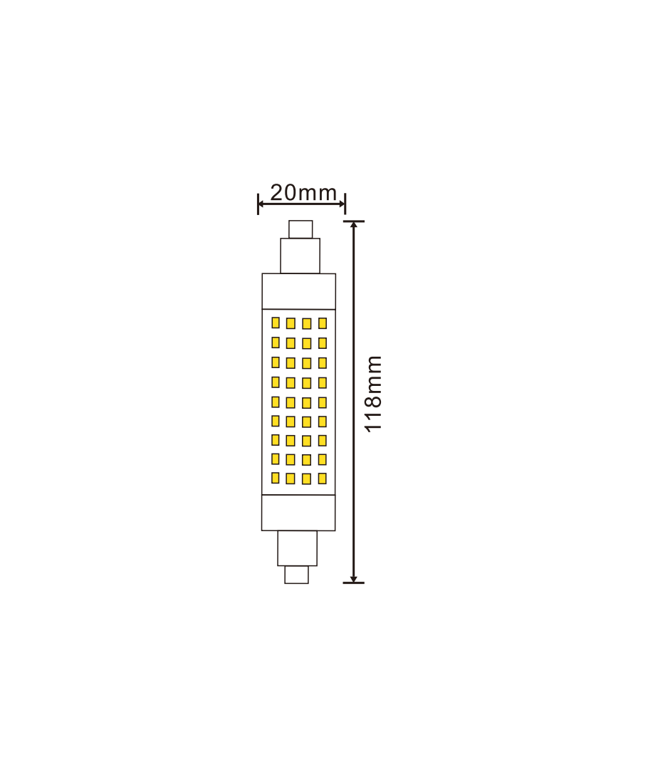Med sina kompakta dimensioner på 118 x Ø20 mm, passar denna lampa perfekt i dina nuvarande inredningar utan att kompromissa med estetiken. Uppgradera till LEDlife R7S LED lampa och njut av kvalitetsbelysning med stil och hållbarhet.