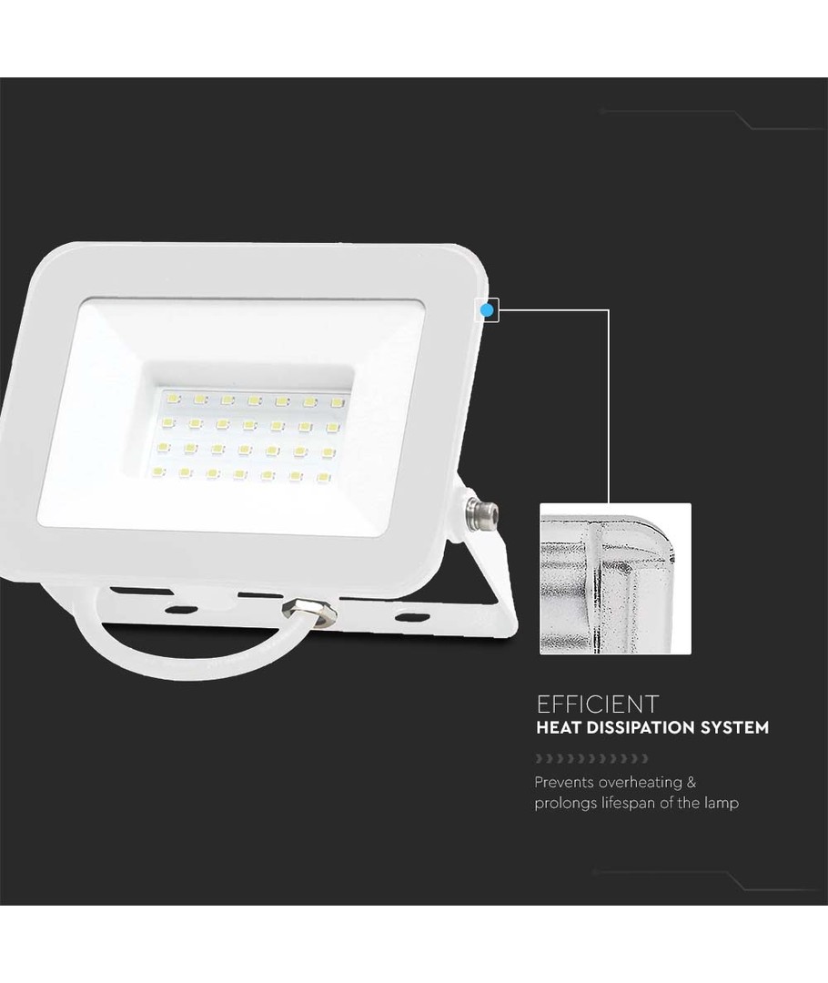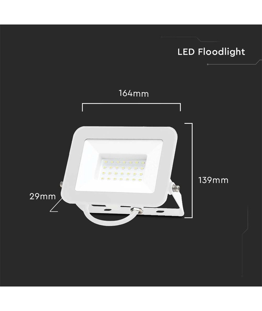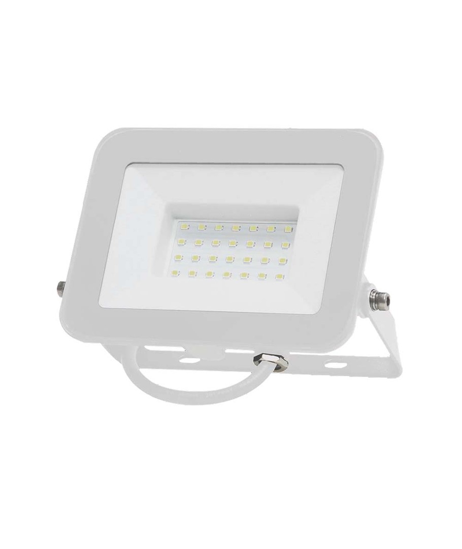 Med sitt vita hus och vita glas, har strålkastaren en stilren och modern design som lätt smälter in i olika miljöer. Tack vare dess IP65-klassning är den perfekt för utomhusbruk, vilket gör den resistent mot vattenstänk och regn.