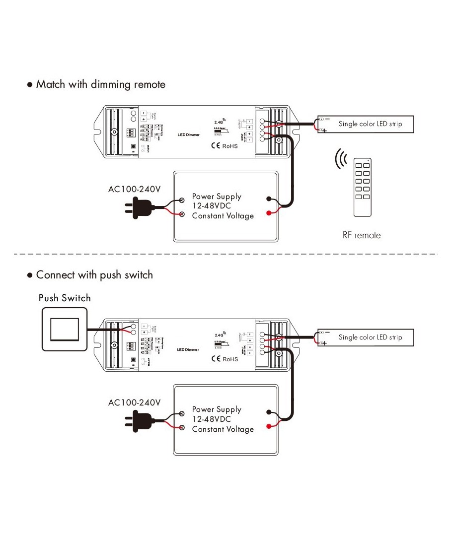 Styr 12V, 24V, 230V och dimning, CCT, RGB - allt med samma fjärrkontroll.